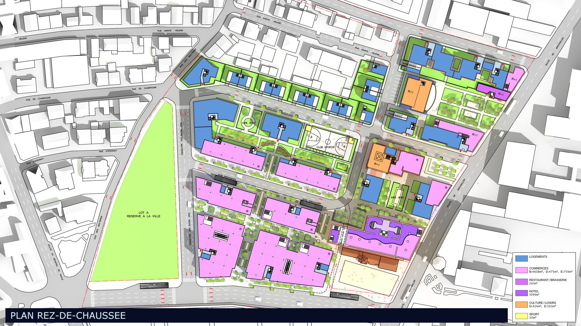 En tout, 80 000 m2 ont été proposés pour la valorisation de cette friche. Grâce à l’étude d’AIM Hanemian Architectes, la ville de Schiltigheim a décidé d’autoriser la création d’environ 60 000 m2.